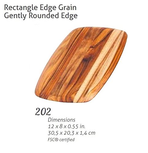 Teak Cutting Board - Rectangle Serving Board With Rounded Edges (12 x 8 x .55 in.) - By Teakhaus