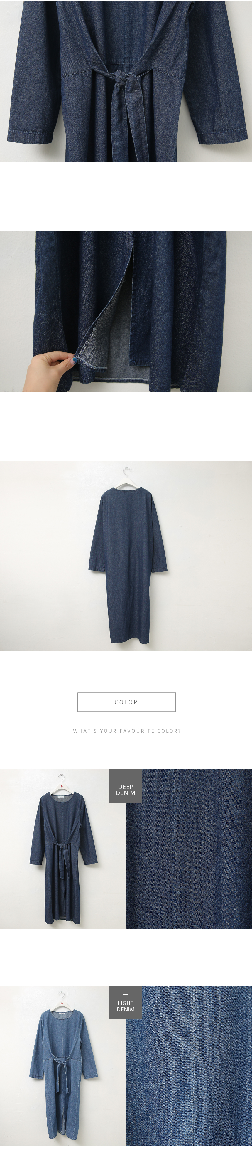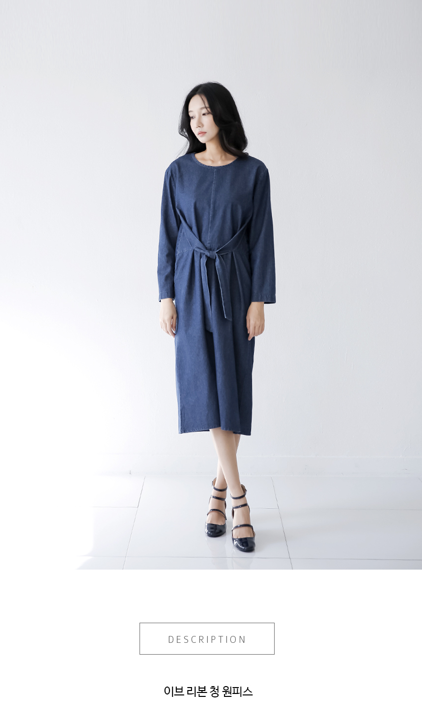 허리선의 리본을 앞중심에서 체형에 맞게 묶어