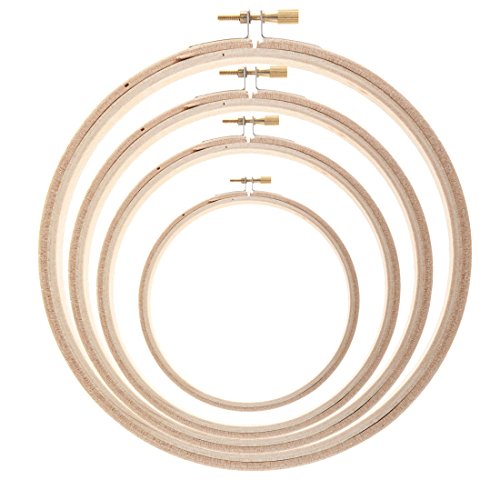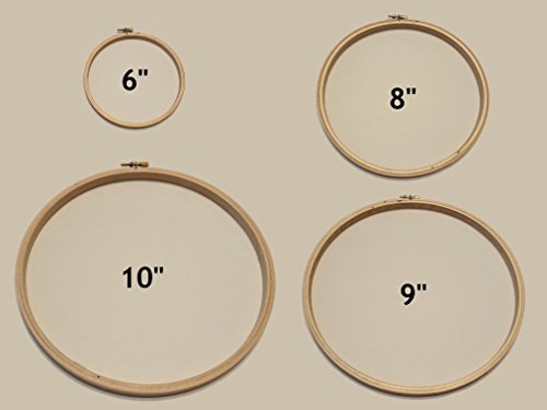 DIY Arts and Crafts Wooden 4 Piece Round Embroidery, Cross Stitch or Quilting Hoop Set - 6 inch, 8 inch, 9 inch and 10 inch