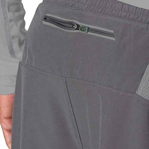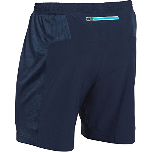 Studio : Under Armour Apparel Publisher : Under Armour Apparel Binding : Sports Product Description Ultra-light, stretch-woven fabric delivers superior mobility . Built-in HeatGear fitted baselayer shorts to power your run. Mesh side panels provide strategic ventilation . 4-way stretch fabrication allows greater mobility in any direction. Moisture Transport System wicks sweat dries fast . Zippered back pocket interior waist key pocket. Reflective logo for greater visibility on low-light runs. Short Inseam: 7”. Baselayer Inseam: 5” . 0