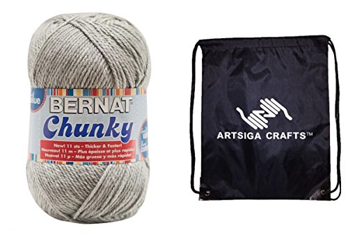 - Bundle includes 1-Pack Bernat Chunky Big Ball Yarn Solids Grey Heather 161130-30046 with 1 Artsiga Crafts Project Bag