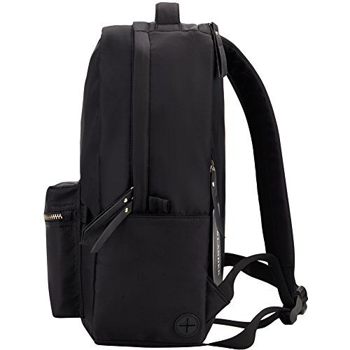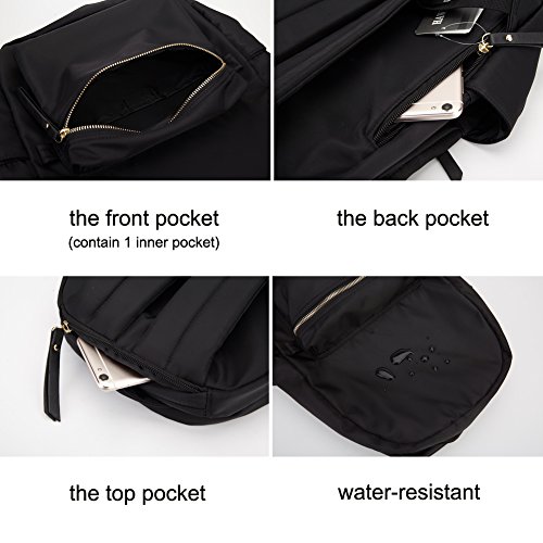 -. Feature : Lightweight and highly waterproof finish.red nylon material.Simple designed bookbag,backpack for school use or outdoors,traveling / Big enough for a 14 inch laptop and some ultra-slim 15.6 inch MackBook.Approx dimensions:11.0"L x 16.9"H x 5.5"W. / Padded back panel and adjustable thicken breathable shoulder straps for ultra comfort and stability / Multiple pockets for carrying books,binders,clothes,the back waist pocket and top pocket is suitable for storing valuables.also 2 side pockets for holding water bottles / Double-zippers closure with a 3.5 inch leather strap allow it easy to open and close,suitable for women and girls