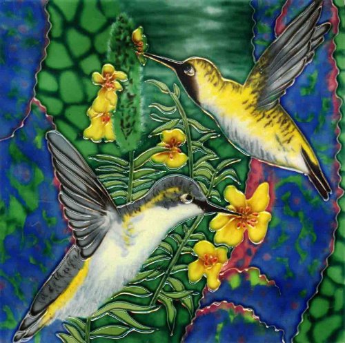 Continental Art Center BD-2020 8 by 8-Inch Two Hummingbirds with Blue and Yellow Flowers Ceramic Art Tile