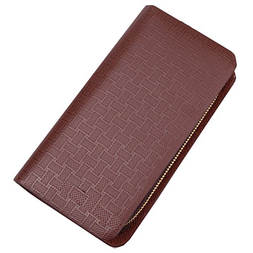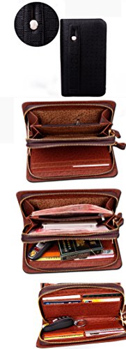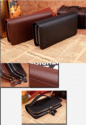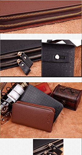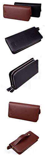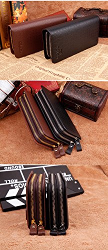Yinglite Long Style Leather Mens Women Leather Wallet & Credit Card Holder Case Cash Receipt with Coin Storage Fashion Bifold Wallet with Multiple Card Slots Double Zipper Clutch Wrist Bag (E-Long Black)