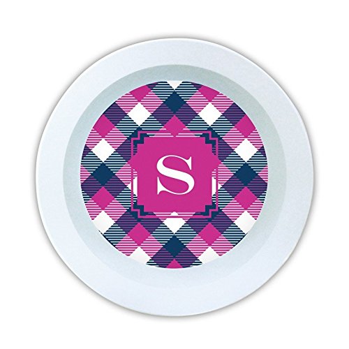 Dabney Lee Tartan Melamine Bowl with Single Initial, Y, Multicolored