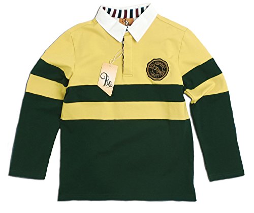 -. Title : 上品子供服 英国小紳士 貴族紋章刺繍入りきちんと感ある長袖ポロシャツ (JPBt)イエロー/DKグリーン 120-170cm