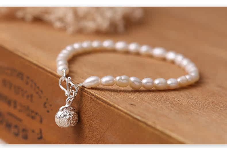天然淡水珍珠手链S925银福袋手串女简约清新好运福字米珠饰品
