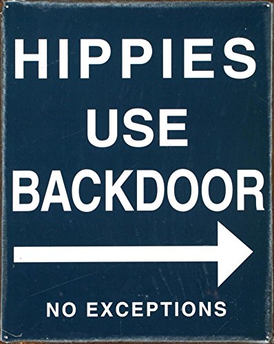[Product Information]- Metal Tin Sign reads: HIPPIES USE BACK DOOR- NO EXCEPTIONS