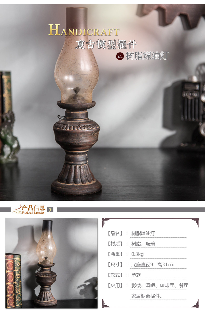 树脂老式煤油灯摆件 摄影酒吧店铺咖啡厅软装饰工艺品