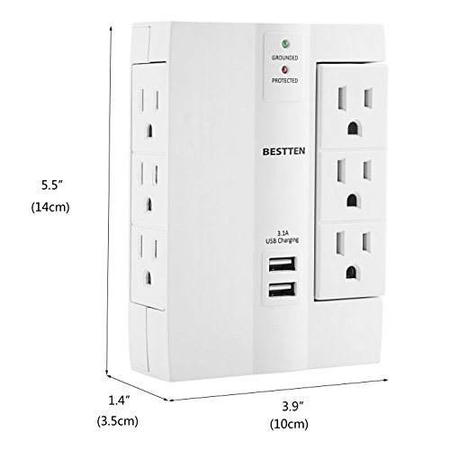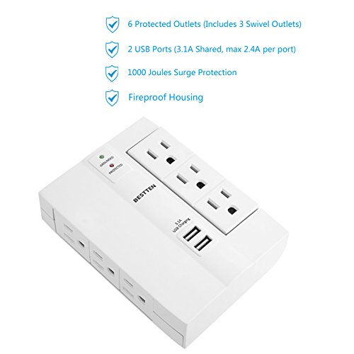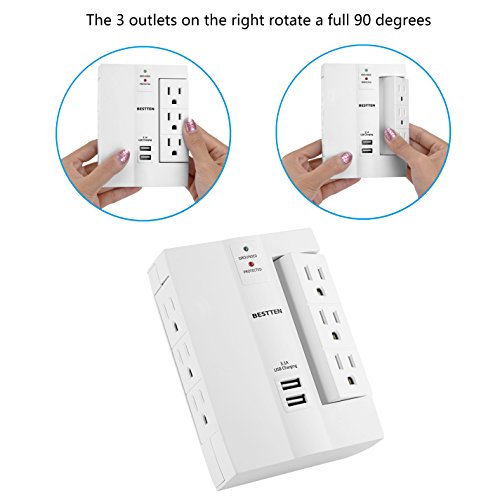 Total of 6 protected outlets including 1 set of 3 rotatable outlets allow for convenient angles to plug in equipment into without interfering with each other
