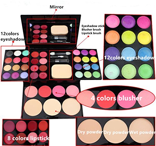 -. Binding : Misc. -. Brand : Pevor -. Color : Black box -. EAN : 0190891344472 -. Feature : ★★《MULTI-FUNCTION FOLDING BOX》: The unique three-tier design, the first layer is the eye shadow; the second layer is the lipstick; the third layer is blusher and powder cake. one box = 5 kinds, just a box to get your daily makeup / ★★《HIGH-QUALITY》: Multi-color rendering of three-dimensional, rich colors, easy to color, fine texture and uniform, not floating powder / ★★《MATERIAL HEALTH IS NOT IRRITATING》: This make-up Palette mild powder does not stimulate the skin, rich in nourishing and moisturizing factor, can promote skin metabolism, suitable for long-term use / ★★《CONVENIENT FOR USE》: The box size is 5.5 x 4.1 x 1.inches and is very handy for traveling and outdoor to carry, to help you keep your looks refined anytime anywhere / ★★《APPLICATION》: Professional beauty salon or personal use, very suitable as an exquisite gift for friends and relatives -. IsAdultProduct : 0 -. Label : Pevor -. Manufacturer : Pevor -. MPN : 201712121102 -. PartNumber : 201712121102 -. ProductGroup : Beauty -. ProductTypeName : BEAUTY -. Publisher : Pevor -. Size : 14cm×11cm×2.8cm -. Studio : Pevor -. Title : Pevor Makeup Palette Kit 24 Colors Eyeshadow +8 Colors Lipstick +4colors Blusher +2 Dry Powder And 1 Wet Powder +3 Makeup Brush +1 Powder Puff +1 Makeup Mirror Three Layers Face Makeup Value Cosmetics -. UPC : 190891344472