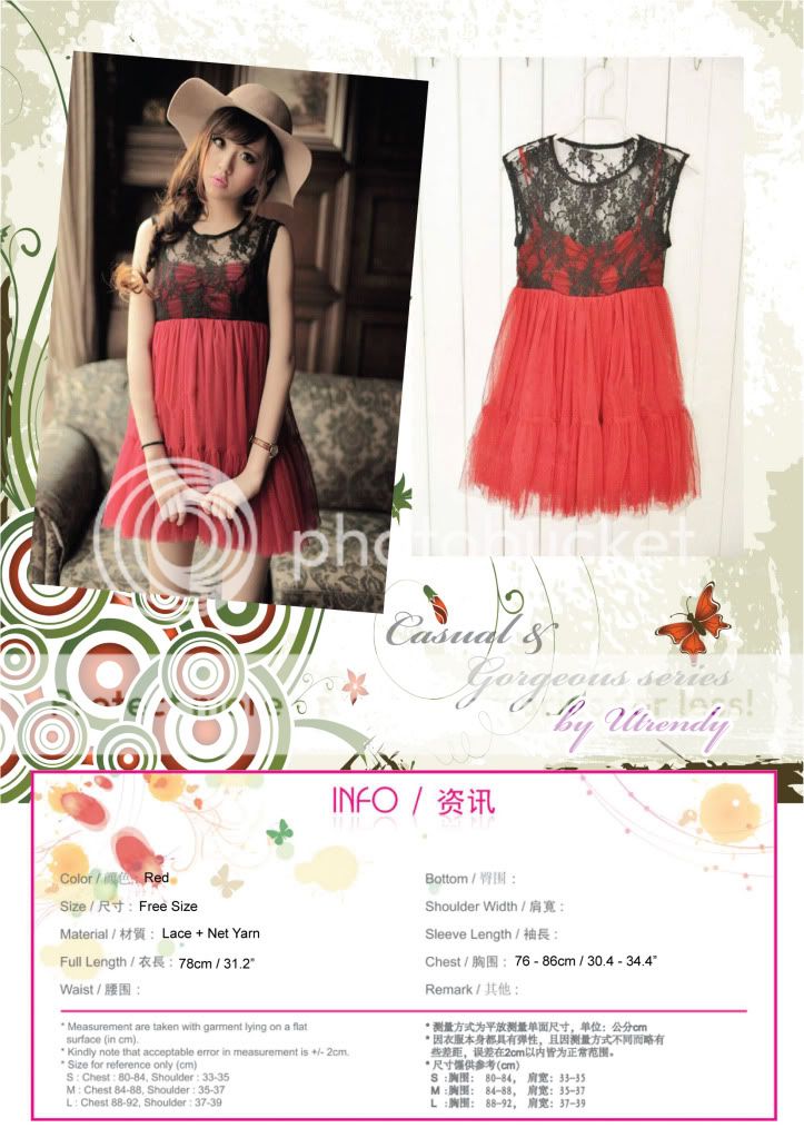 D0093 - Red Princess Style Lace + Net Yarn Dress ( With Inner Piece )