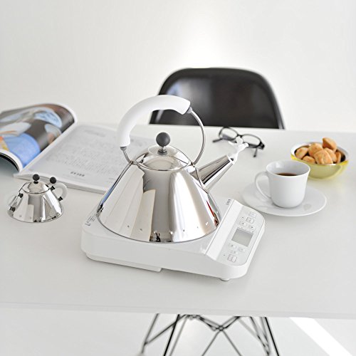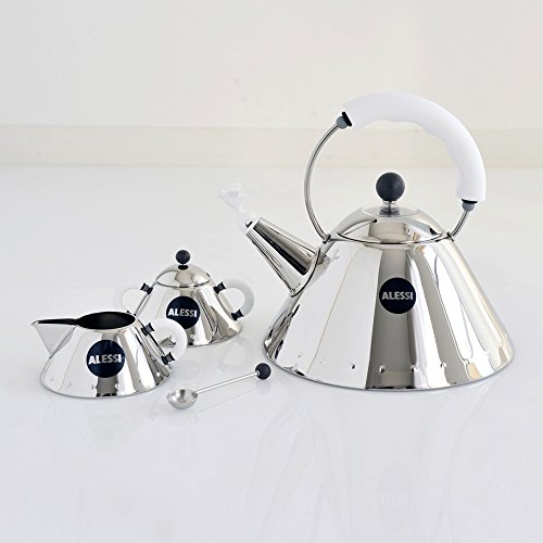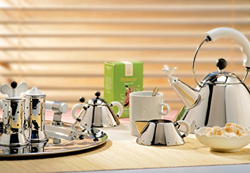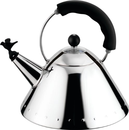 This celebrated kettle with the bird that sings when the water has boiled was a great success when it was introduced in 1985, and for Alessi it represented a meeting of great design and mass production methods, a combination that Michael Graves worked hard to achieve, applying his personal visual code which fused influences from Art Deco to Pop Art and even the language of cartoons.Feature
