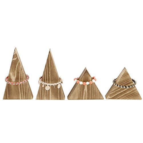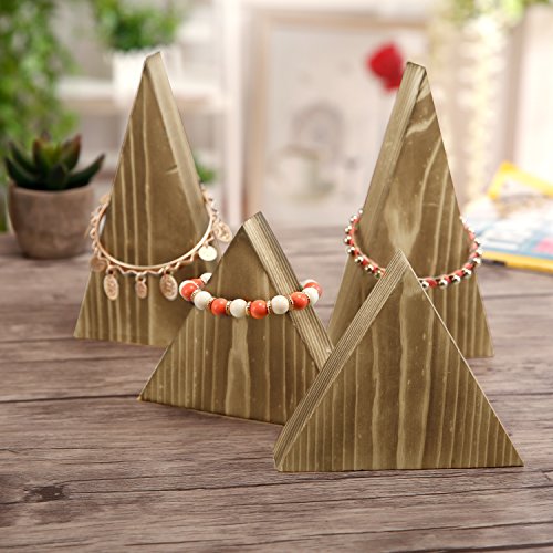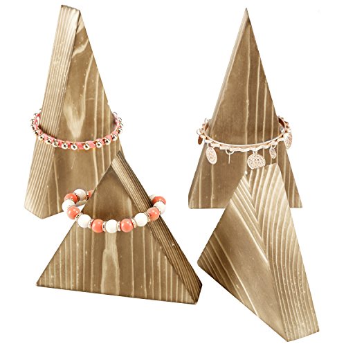 Set of 4 Natural Wood Triangle Necklace Bracelet Storage Stand, Retail Jewelry Display Rack