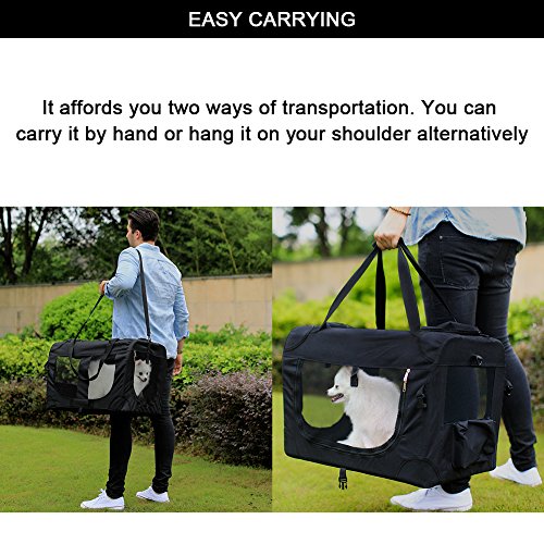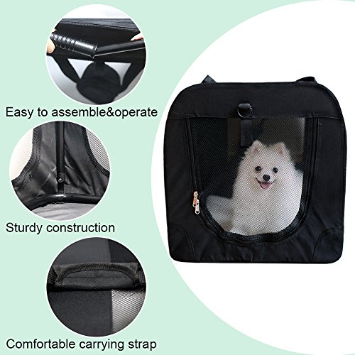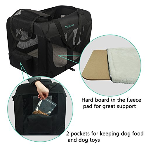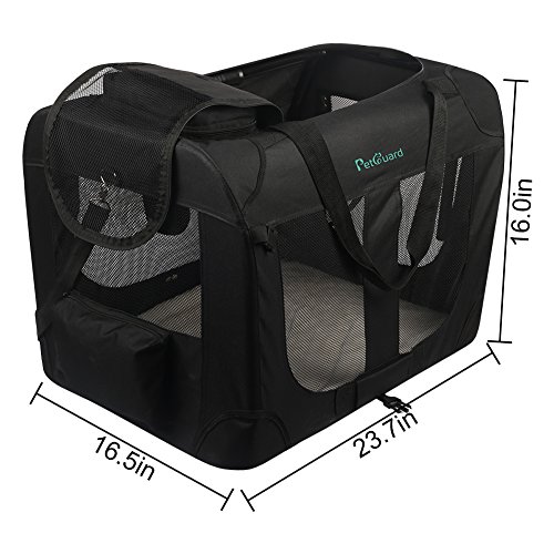 -. Binding : Misc. -. Brand : PetGuard -. Color : Black -. Feature : STURDY & LIGHT WEIGHT ★Metal frame to keep the shape of the soft Portable Car Travel Dog /Cat Crate ★Wood board in the bottom with fleece cover provide great support . Weight : 7.38 lb just like a cat ! / EASY TO USE ★ easy take down and put up ★ folds up nicely and is easy to carry & storage ★ The fleece pad is machine washable / SOFT & COMFORTABLE this create gives her lots of room while still providing that cozy den feel. / EXTRA BONUS : ★ 2 pockets for storing dog necessities when you go to the park or the vet. ★With hand and shoulder carrying strap . / GOOD VENTILATION Mesh ventilation on 4 sides not only provides adE.q.u.a.t.e airflow, but also easy viewing--perfect for your pet to look out and for you to check on your pet. -. Label : Petguard -. Manufacturer : Petguard -. PackageQuantity : 1 -. ProductGroup : Pet Products -. ProductTypeName : PET_SUPPLIES -. Publisher : Petguard -. Studio : Petguard -. Title : Pet Carrier Soft Sided Cage Travel Tote Sherpa with Steel Frame for Small Dogs and Cats
