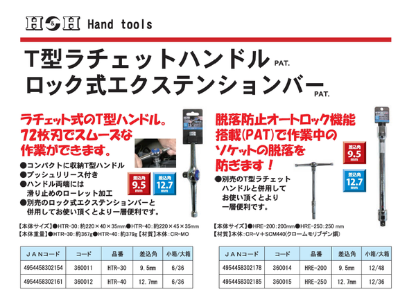 【商品名】(業務用9個セット) H&H ロック式エクステンションバー/作業工具 【差込角12.7mm】 脱落防止オートロック機能搭載(PAT) HRE-250 1/2