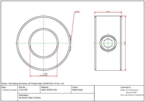 Climax Metals C-031-BOX20 Shaft Collar with 10"-32" x 1/8 Set Screw, One Piece, Set Screw Style, Black Oxide Plating, Steel, Steel, 5/16" Bore Size, 5/8" OD (Pack of 20)