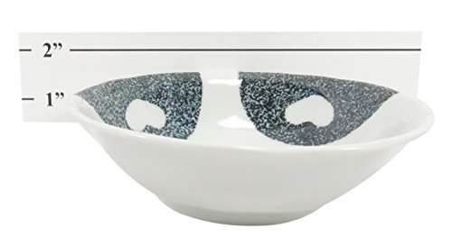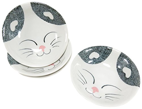 THE SPECIFICS: Set of four small, adorable bowls measures 5.5" x 1.5" (8 ounce) in a white, blue and pink cat design. Made of porcelain, microwave and dishwasher safe.