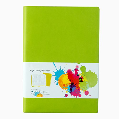 LABON'S Journal Notebook A4/A5/A6/ Ruled Diary Colored Edges PU Leather Softcover (A5,Green)
