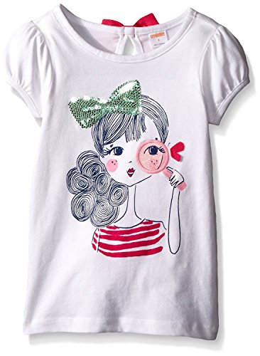 Great to wear for play dates or any events you may have. Blouse is short sleeve with a tear drop back. Pink bow is sewn on the back of the neck line above the tear shape. In the front is a girl with curly hair using a magnifying glass. This is great for the gift giver.Feature