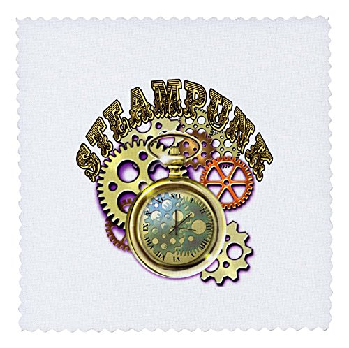 3dRose A Steampunk Them along with Metal Gears, Cogs, Pocket Watch and Text. - Quilt Square, 6 by 6" (qs_212829_2)
