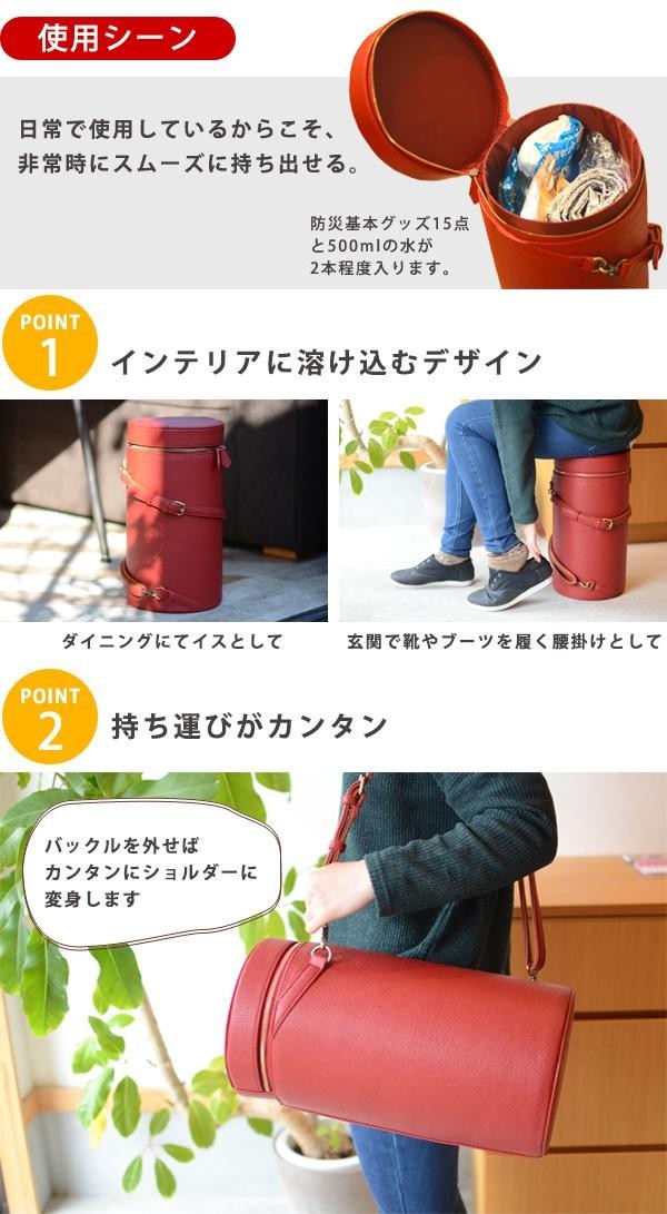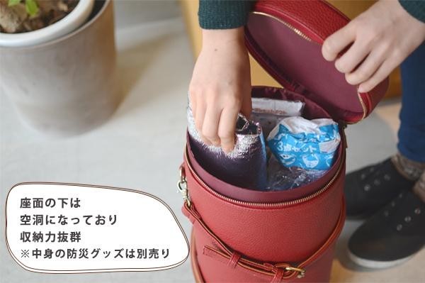 緊急時の防災バッグは、奥にしまいがち・・・。そんな防災バッグをいつも身近においておけるようにデザインしたスツールを考案しました!スツールとして使用できるので、ダイニングの予備椅子としておいておいてもOK、玄関イスとしても使えるので、いつも身近に防災用品をおいておくことができます。お手持ちの防災グッズなどを是非保管してください。インテリアにもなじむデザインに仕上げています。 |