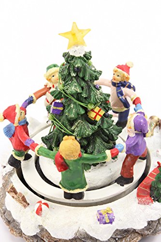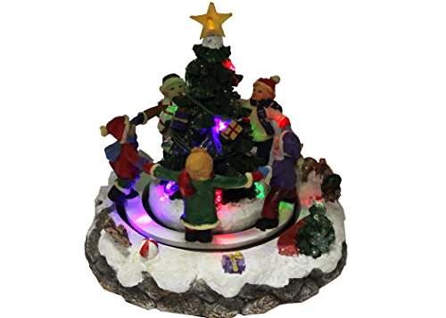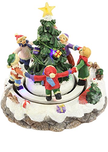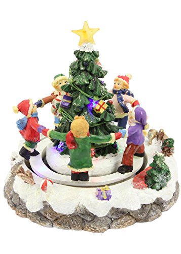 10"H Battery Operated LED Lighted Children Playing Under Christmas Tree - Rotating Tree