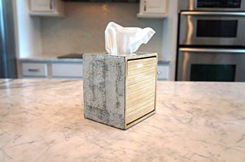 Bodhi Tree Collections Tissue Box with Bamboo and Inlaid Eggshell, Natural Bamboo, Black & White