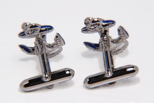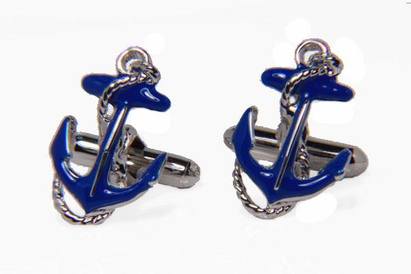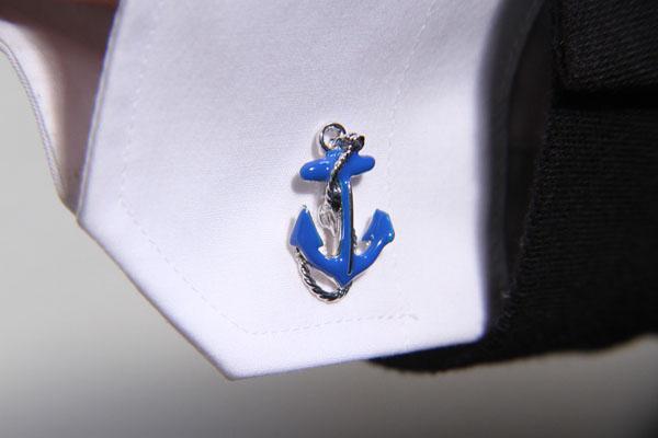 イカリをモチーフにしたカフス。ブルーにデフォルメされた可愛いイカリに銀色のチェーンが巻きつく、可愛いだけじゃないカジュアルタイトなカフス。カフスのみならずピンズやタイドメなども揃えてつける方も多い人気のデザインです。
