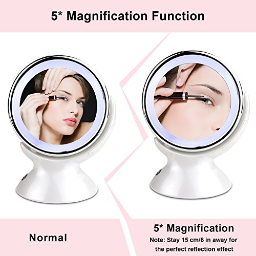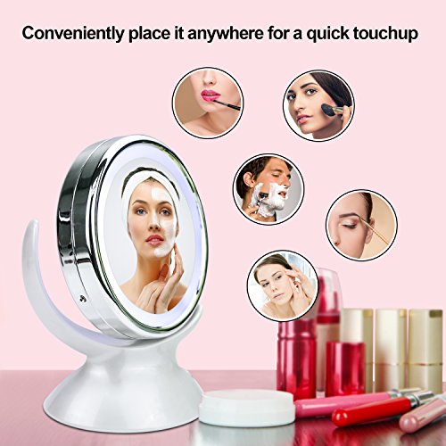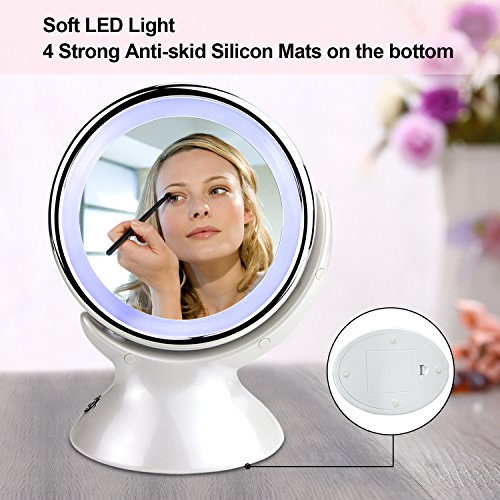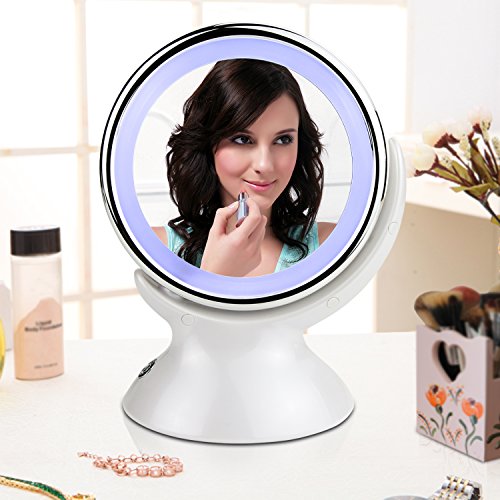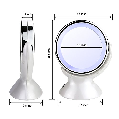 LED Lighted Makeup Mirror: Get a clearer sight of your face with a focused light that allow you to do your make-up in the dark or poorly lit areas. Natural white light helps reflect true colors