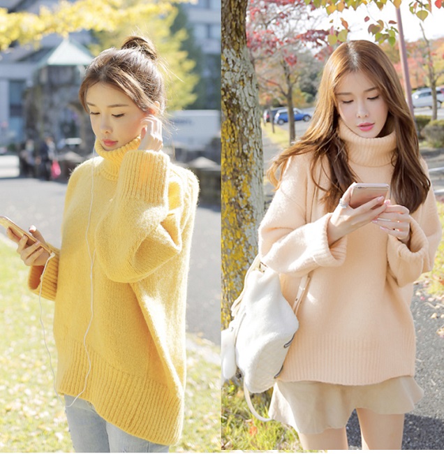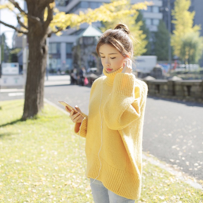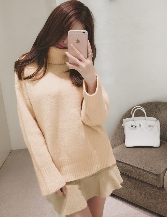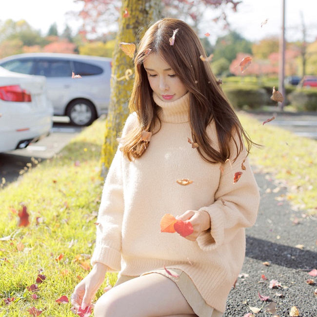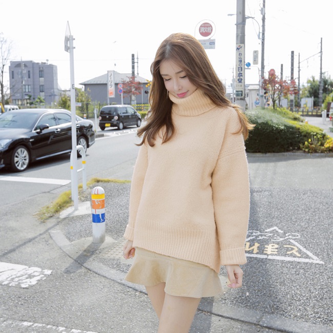 ドロップショルダーのふんわりシルエットニット