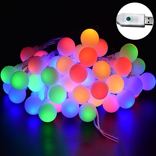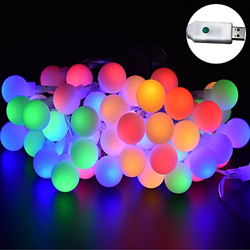 DODLIGHTNESS 33feet/11m Globe ball String Light,Indoor/Outdoor LED String Lights for Gardens,Bedroom,Home, Wedding, Christmas Party, USB-powered (Warm White/RGB/Blue/White)