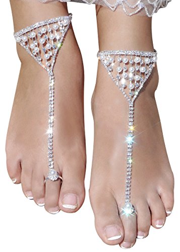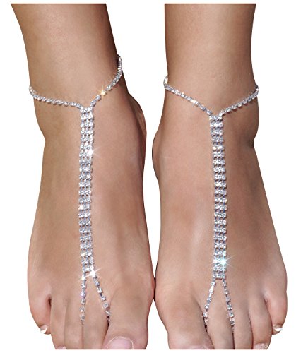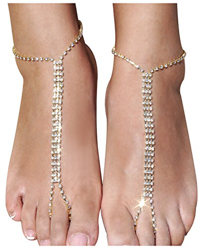 Features of the pair of foot Chain: crystal barefoot sandals with toe ring,comfortable to wear and keeps the shape;Adjustable ankle length with the extend chain; Light weight, can wear with or without shoes
