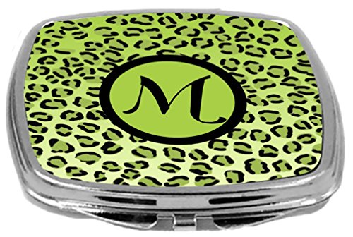 Rikki Knight Compact Mirror, Letter m Initial Lime Green Leopard Print