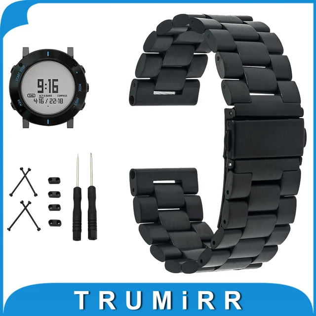 | [해외] 24 미리메터 스테인레스 스틸 시계 밴드 + 러그 어댑터 + 도구 suunto 코어 접이식 버클 스트랩 손목 벨트 팔찌 블랙 골드 실버 |