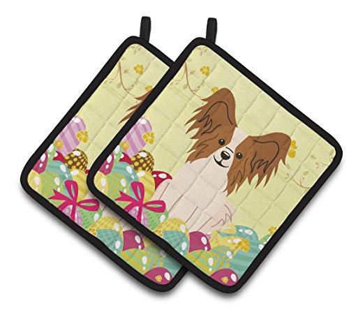 Caroline's Treasures Easter Eggs Papillon Red White Pair of Pot Holders, 7.5HX7.5W, Multicolor