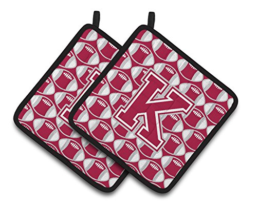 Caroline's Treasures Letter K Football Crimson, Grey & White Pair of Pot Holders CJ1065-KPTHD, 7.5HX7.5W, Multicolor