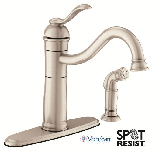 Moen 87427 Single Handle Kitchen Faucet with Side spray from the Walden Collection, Spot Resist Stainless Micro ban