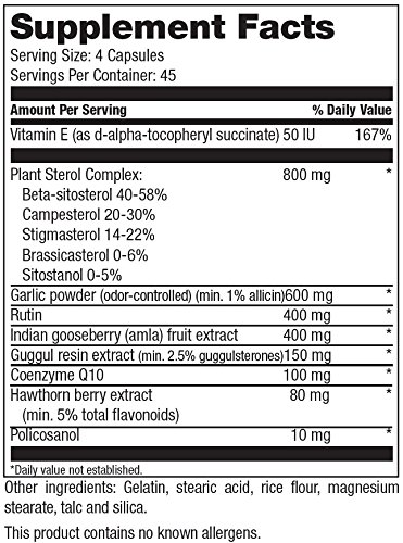 For a healthy heart, lifestyle is key: Eat well, exercise regularly, and reduce stress. Targeted nutritional support may also promote improved heart-health indicators.* Ultimate Cardio-8 complex provides: Policosanol is extracted from sugar cane or beeswax. It supports healthy triglycerides levels already within normal ranges.* Co-Q10 100 mg is used by the body to transform food into ATP, the energy on which the body runs. It contributes to the heart's energy-making mechanisms.* Plant Sterol Complex is a group of organic compounds found in plants that support healthy cholesterol levels already within normal ranges.* Vitamin-E is an antioxidant that protects cell membranes from damage.* Gugul is a small thorny plant grown all over India. Gugulipid has shown to support healthy triglyceride levels already within normal ranges.* Garlic has been used since time immemorial as a culinary spice and medicinal herb. Garlic has been cultivated in the Middle East for more than 5,000 years and has been an important part of Traditional Chinese Medicine. The bulb is used medicinally to help support healthy cholesterol levels already within normal range.* 0 |