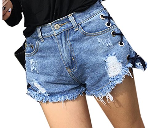 -. Title : ININUK ショート パンツ デニム  ダメージ レディース ゆったり 短パン カジュアルパンツ ショートデニム/パンツ/ボトム/デニム /レディース 細身 足長 美脚 カジュアル 綿パン 夏 デニム ハイウエスト 通学 ファション