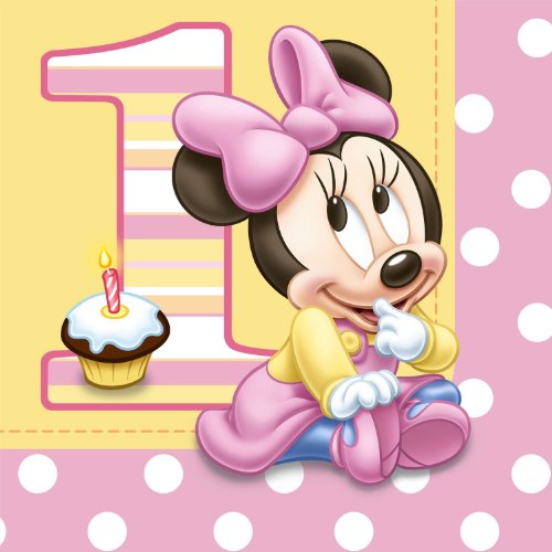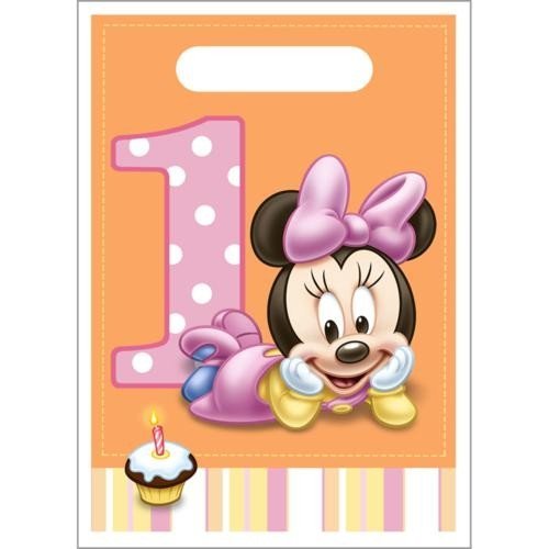 -. Title : Disney Minnie Mouse 1st Birthday Party Supplies Pack Including Plates, Cups, Napkins, Favor Bags, Invitations, and Table Cover - 16 Guests