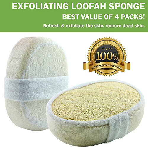 Exfoliating Loofah Bath Sponge Pads Pack Of 4 - Ultra Thick, Great For Exfoliating Shower - 100% Natural - Best Luffa Sponge And Spa Scrubber For Men...