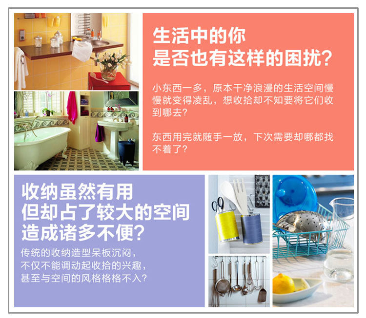 Accessories: three hooks, tubular container, PVC stickers, mounting bracket