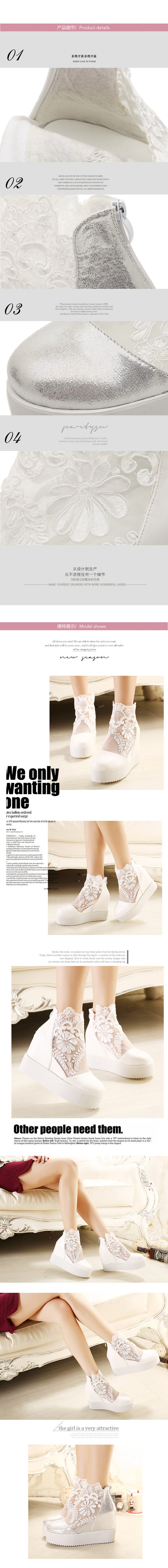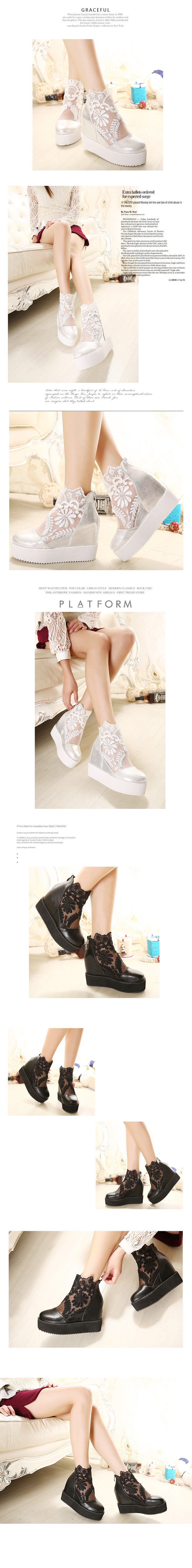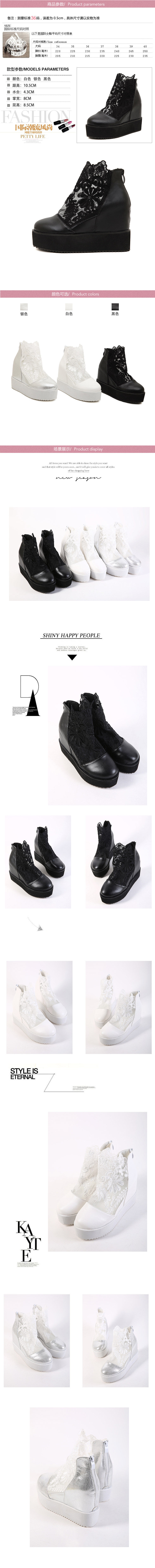 韩版镂空网面高帮松糕鞋 秋鞋防水台学生鞋 蕾丝拼接内增高单鞋女