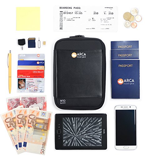 -. Feature : TRAVEL EXPERIENCE PROTECTED - Our passport holder/ travel wallet blocks RFID signals and protects your information stored on RFID Chips on passport and credit cards from unauthorized scans. / LIGHT WEIGHT & DURABLE - made of resistant high quality nylon our RFID travel wallet it's easy to carry and will hold all your valuables safe. / SUITABLE FOR MEN AND WOMEN - 8.6 " high and 6.1" wide - the travel wallet can be comfortably worn around the neck or shoulder by adjusting the strap position on ring loops. / MULTIPLE COMPARTMENTS - Our travel document organizer gives you special space inside for 5 credit cards, 3 passports, also for boarding passes, smartphone, tickets. It has a mash pocket where you can put coins, keys, USB, SIM card, earphones and on the exterior a pocket suitable for a 6" Kindle. / FREE ADJUSTABLE NECK STRAP - Our passport wallet comes with a high quality strap, designed to be comfortable and easy to adjust for shoulder or neck position.