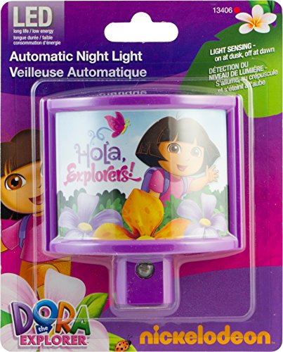 Studio : Jasco Products Company, LLC Publisher : Jasco Products Company, LLC Binding : Tools Home Improvement Product Description Light up your child's room with this wraparound night light featuring dora the explorer! the wraparound night light provides an energy-efficient, soft light glow. It uses light-sensing technology to turn on at dusk and off at dawn. The night light's unique design does not interfere with a second outlet. Long-life, energy-efficient leds are cool to the touch making this night light safe for any room in your home. It's perfect for kids of all ages. This product comes with a 90-day limited warranty. 0