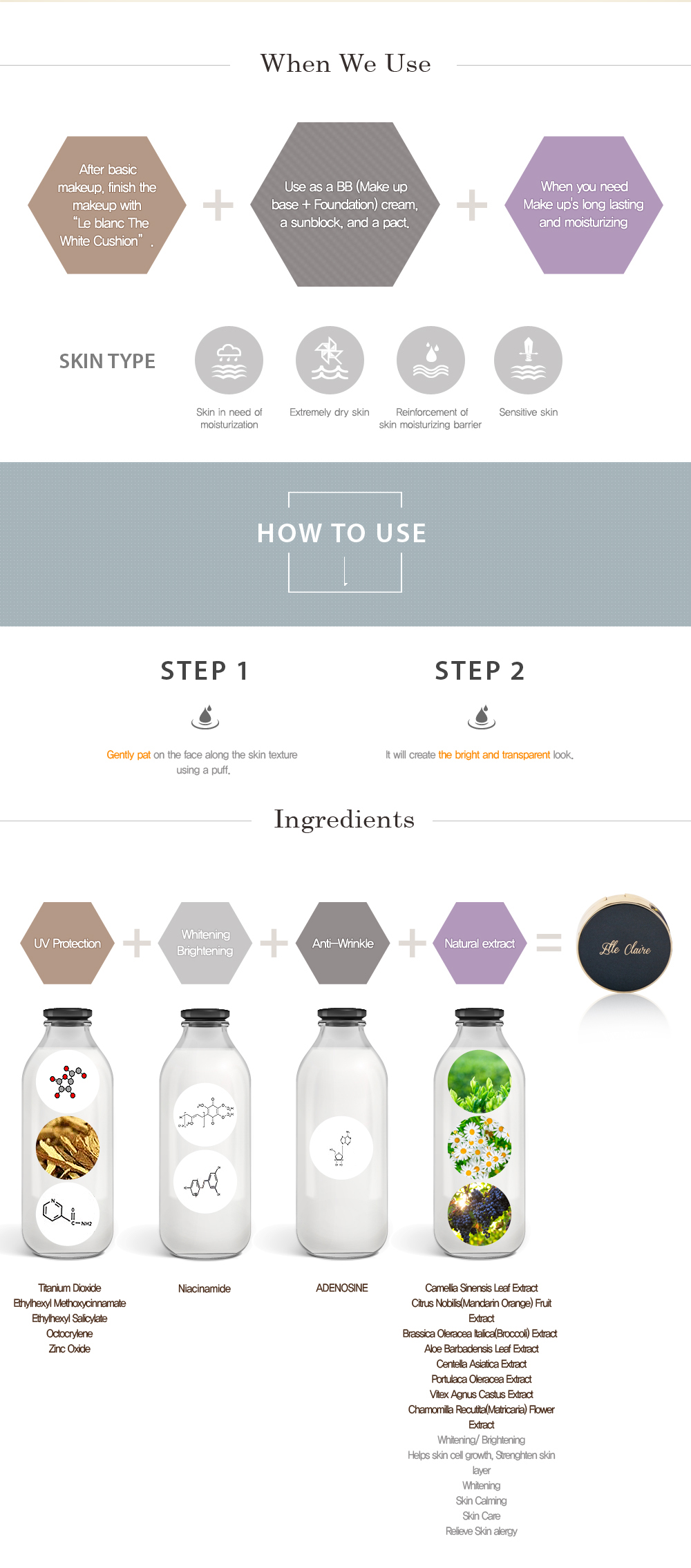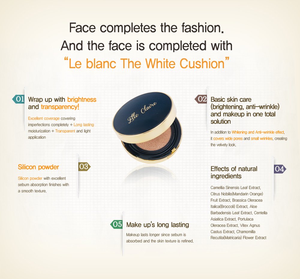 [ELLE CLAIRE]Le Blanc The White Cushion UV Protection Whitening Anti-wrinkle Facial Powder
