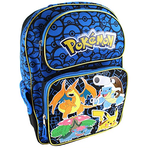 This backpack and lunch box set is full of awesomeness! This Pokémon backpack and lunch box set can easily carry books, gym clothes, pencils, snacks, and more! This day pack features a roomy main compartment and two front pockets. The sides feature pockets that are great for storing a calculator, note cards, or even a water bottle and the matching lunch box makes lunchtime fun and exciting. This book bag can be hung up when not in use by the webbed locker loop. Back pack and lunch box are designed in durable fabric with awesome graphics of your favorite Pokémon characters: Charizard, Venusaur, Blastoise, and Pikachu! The ultimate back to school choice for any Pokémon fan!Feature