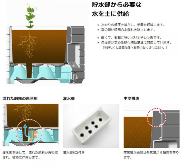 ●大容量貯水の底面給水機能付きタイプのプランター!軽くて丈夫で景観と調和する豊かな質感が特徴です