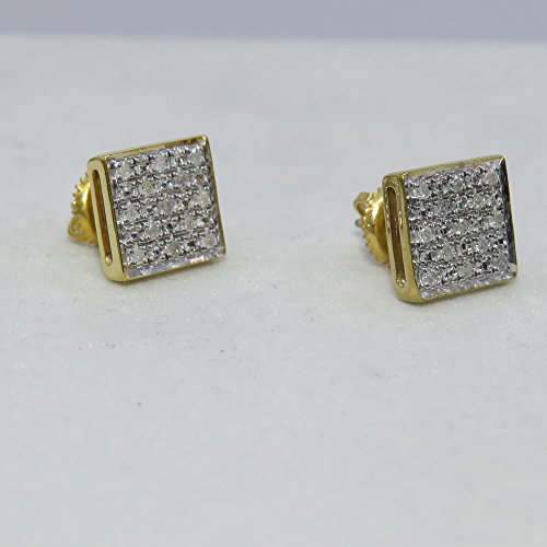 Brand, Seller, or Collection Name:Dazzlingrock Collection Metal stamp:925 Metal:yellow-gold-plated-silver Material:yellow-gold-plated-silver Gem Type:White diamond Minimum total gem weight:0.10 carats Setting:micropave Width:9 millimeters Length:9 millimeters Back finding:screw-back Total metal weight:1 Grams Resizable:No Stone Weight:0.10 carats Model number:RD0328 Lab Created:No Stone shape:Round Minimum color:I-J Minimum clarity:I2-I3 Cut:Very good cut Polish:VG Stone Creation Method:Natural Stone Treatment Method:NONE